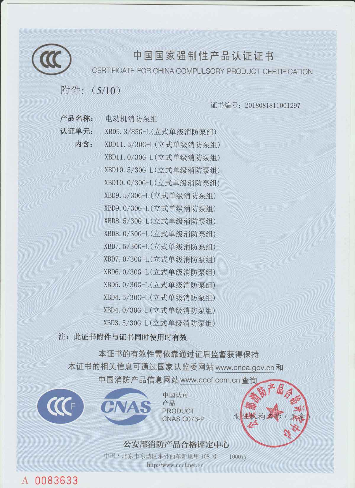 公司生产产品通过ISO9001:2015国际质量体系认证,消防系列产品取得CCCF国家强制性认证证书,通过认证型号规格达500余个,并取得全国工业产品生产许可证,产品经权威机构检测,全部达到规定要求。 公司主营产品有:生活循环泵,消防用泵,污水泵,化工用泵,二次供水设备,控制柜等。产品被广泛应用于石油、化工、冶金、矿山、发电、热力、城市建设、污水处理、消防设施、集中采暖、农业排灌等行业。